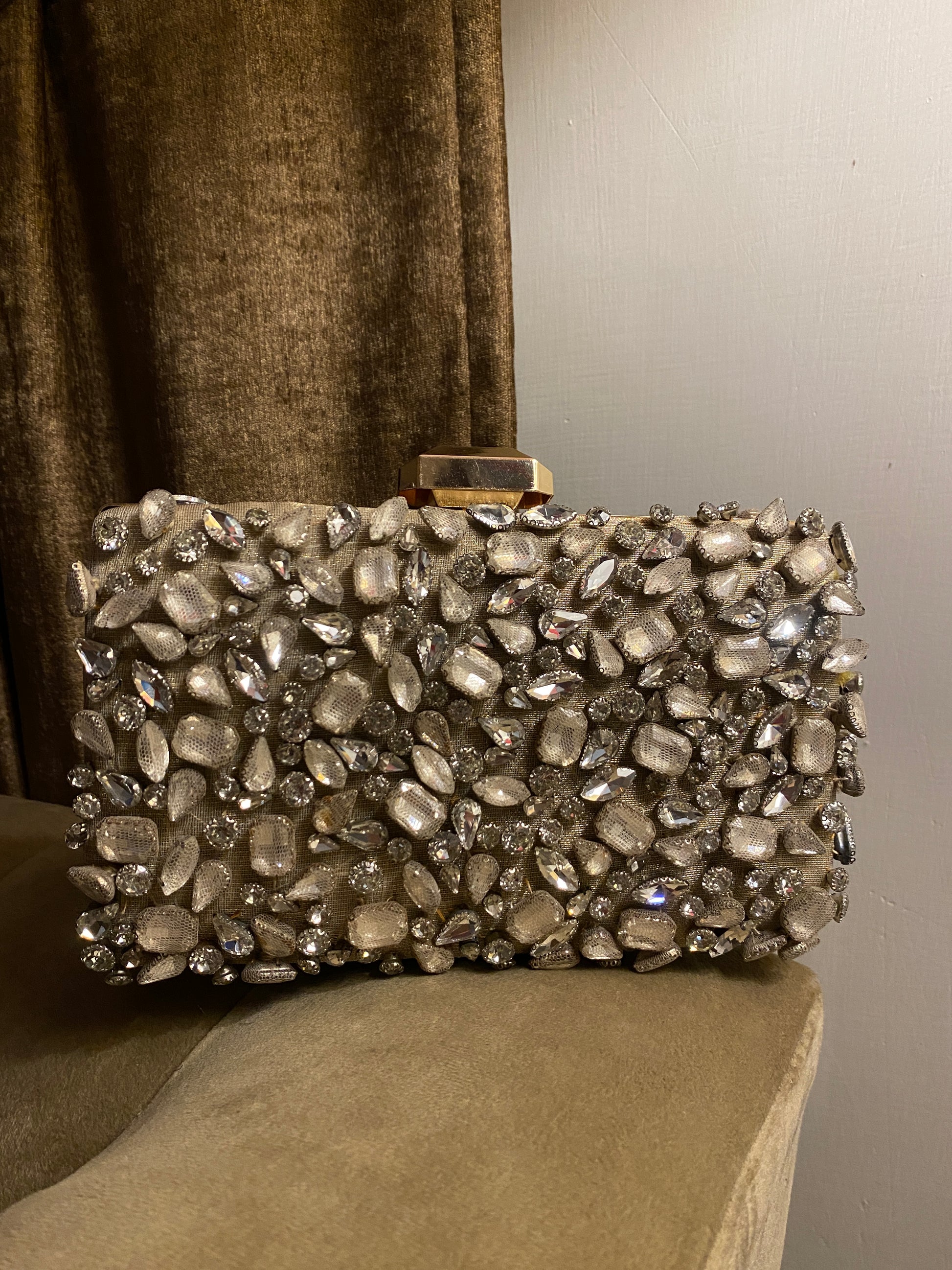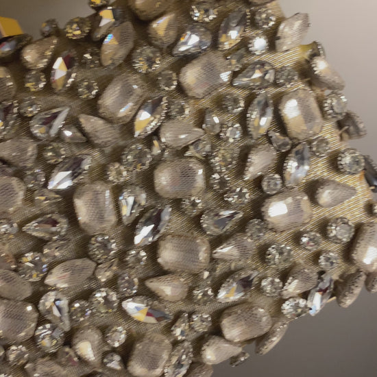 Exclusive diamonties goodness, all set on a bed of gold mehsuri silk detailed to perfection with multiple micro & mega sizes of silver stones — intricately designed with net techniques on each diamontie; make it an absolute masterpiece — with both side having spent 72 hours by our karigars, this piece is truly glorious in its own way!✨🪄