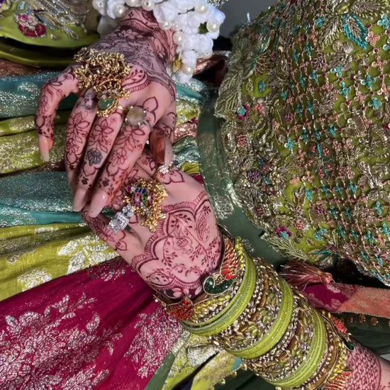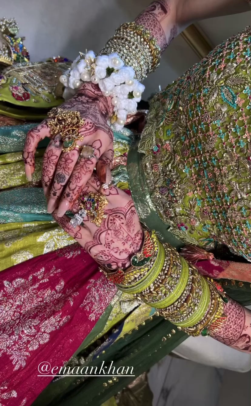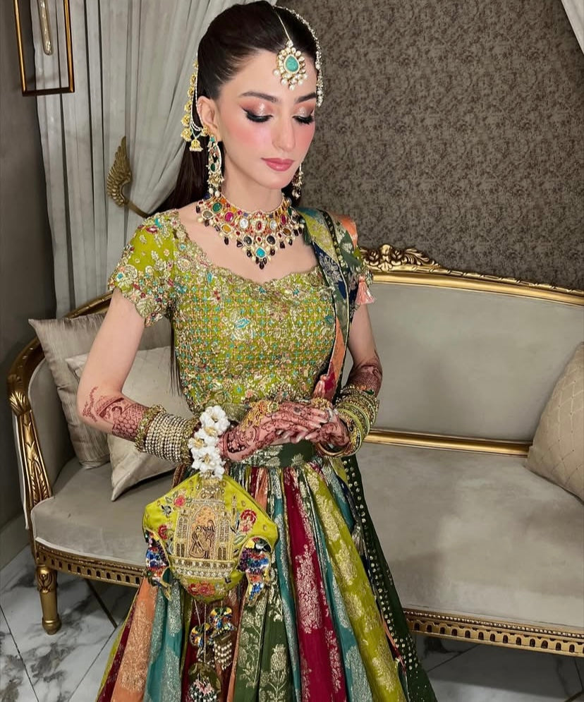Detailed with the techniques of naqshi, kora, zardozi, sequins patterns & plating- with hints of stones, reshams & dangling jewellery pieces to make this piece an absolute stunner - based on a silk fabric detailed with banarsi inners & complimented with ghungroos, it’s something straight out of a fairy tale - Not a regular piece of work, it’s a whole aura & vibe✨