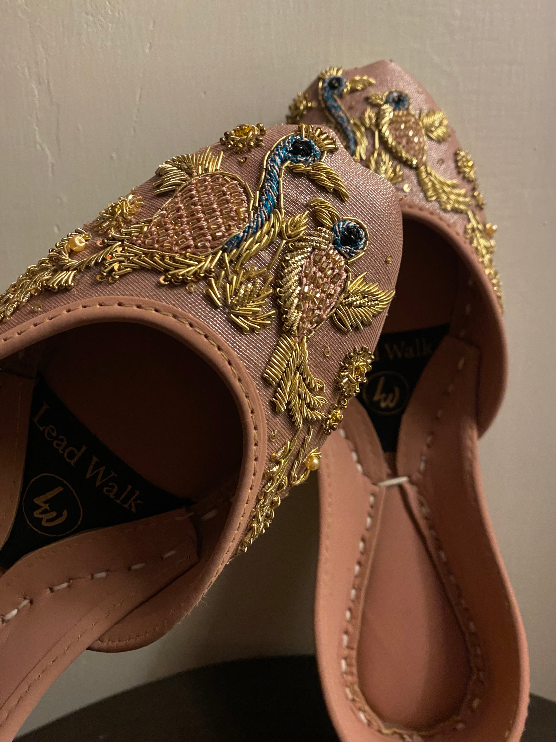 M A H W I ~ Modern silhouette marking the dimensions out of the box! An exceptionally cored jutti ~ a match made in fictions, contemporary fashion details with the bold marks of adventures, just like a true magic. On the Kashmiri Pink Mehsuri Beauty with intricate hints of resham, zardozi, mukesh spots, a whole level of craftsmanship ✨