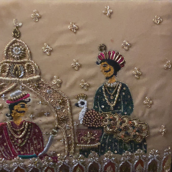 Some magestic & intricately detailed techniques on the base of biscotti velvet; amalgamated with the designs of kora dabka, minute sequins, vibrant & warm tonal resham & zarri touches with the hints of stone & pearls β this MUGHLIA PURSE DUO is all you need to feel the most precious with that saree or your shadi jora, something that adds a touch of Raani to your overall styleβ¨